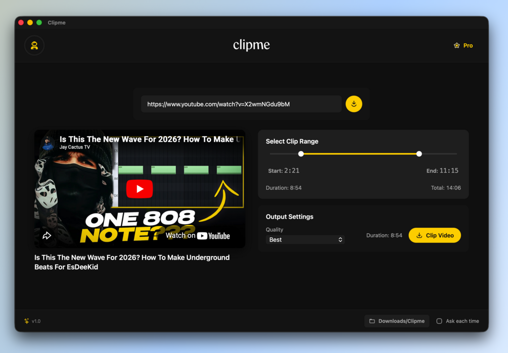 Clipme Pro gives you access to download 1080p+ Videos & Clips from YT.